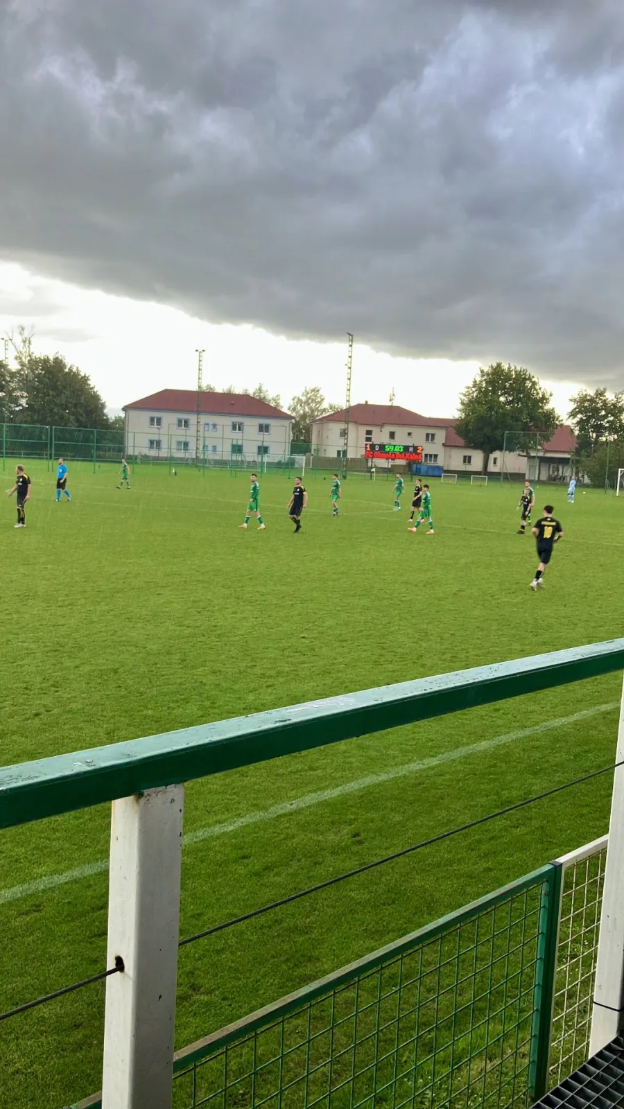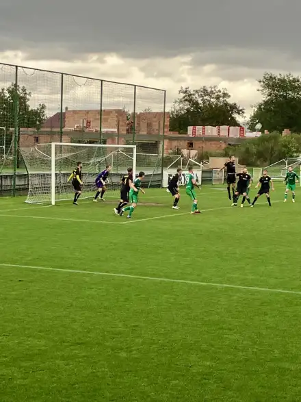Ve druhém poločase se začali ženit všichni čerti – zatáhlo se, spustil se vydatný liják a terén se stával čím dál náročnějším. Soupeř zahájil druhou půli velmi aktivně a hned ve 49. minutě jsme si oddechli, když Dan Navrátil „sestřelil“ před pokutovým územím domácího útočníka. Naštěstí viděl pouze žlutou kartu. O tři minuty později ale již kapituloval: Martin Bartoš zaváhal na zemi s odkopem, Kraják dostal do uličky skvělý míč a tváří v tvář našemu gólmanovi nezaváhal – 1:2.