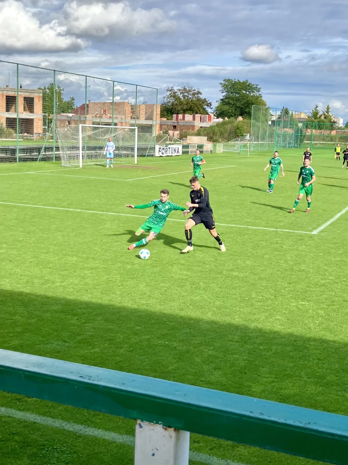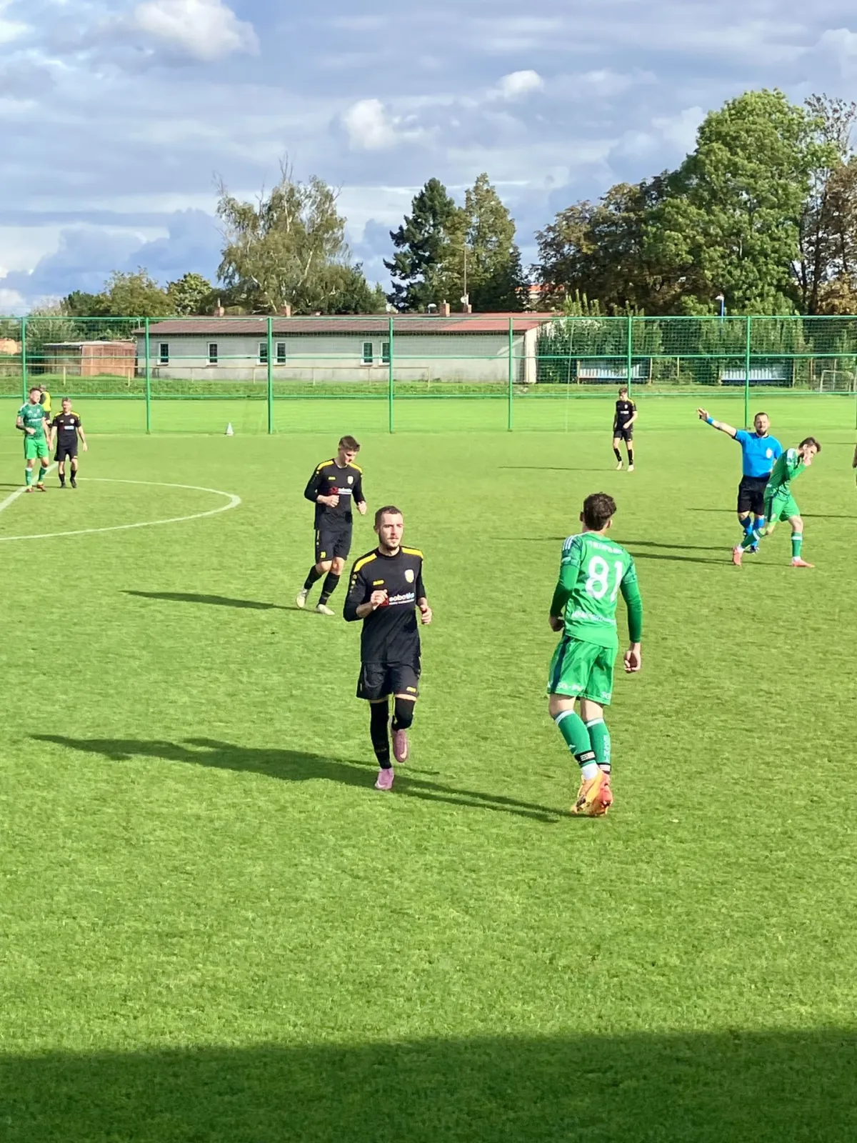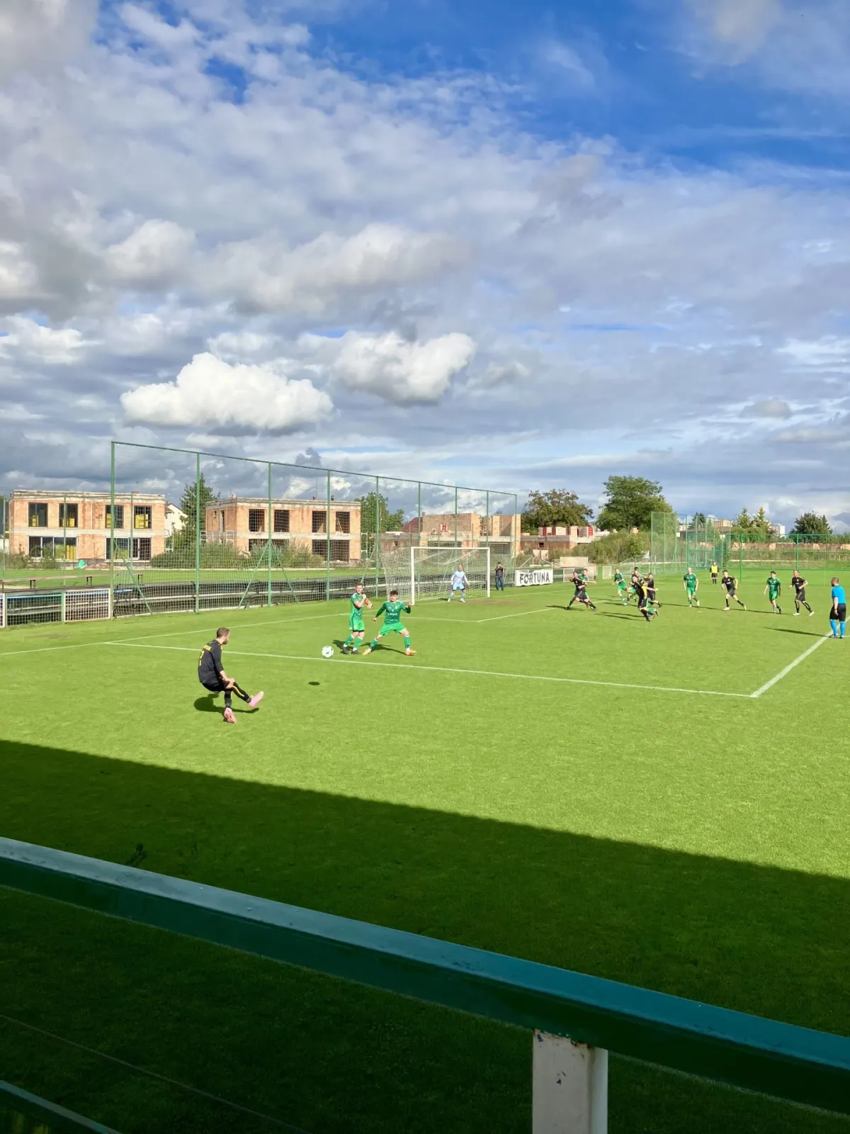 Ve 45. minutě jsme po faulu na Štěpána Drinku kopali trestný kop z dobrých 28 metrů. Zdenda Tauchman poslal na bránu nechytatelný projektil, který před gólmanem Maškem zaplaval a zastavila ho až síť – 0:2. Ihned po rozehrávce ukončil rozhodčí Adamovič první poločas.