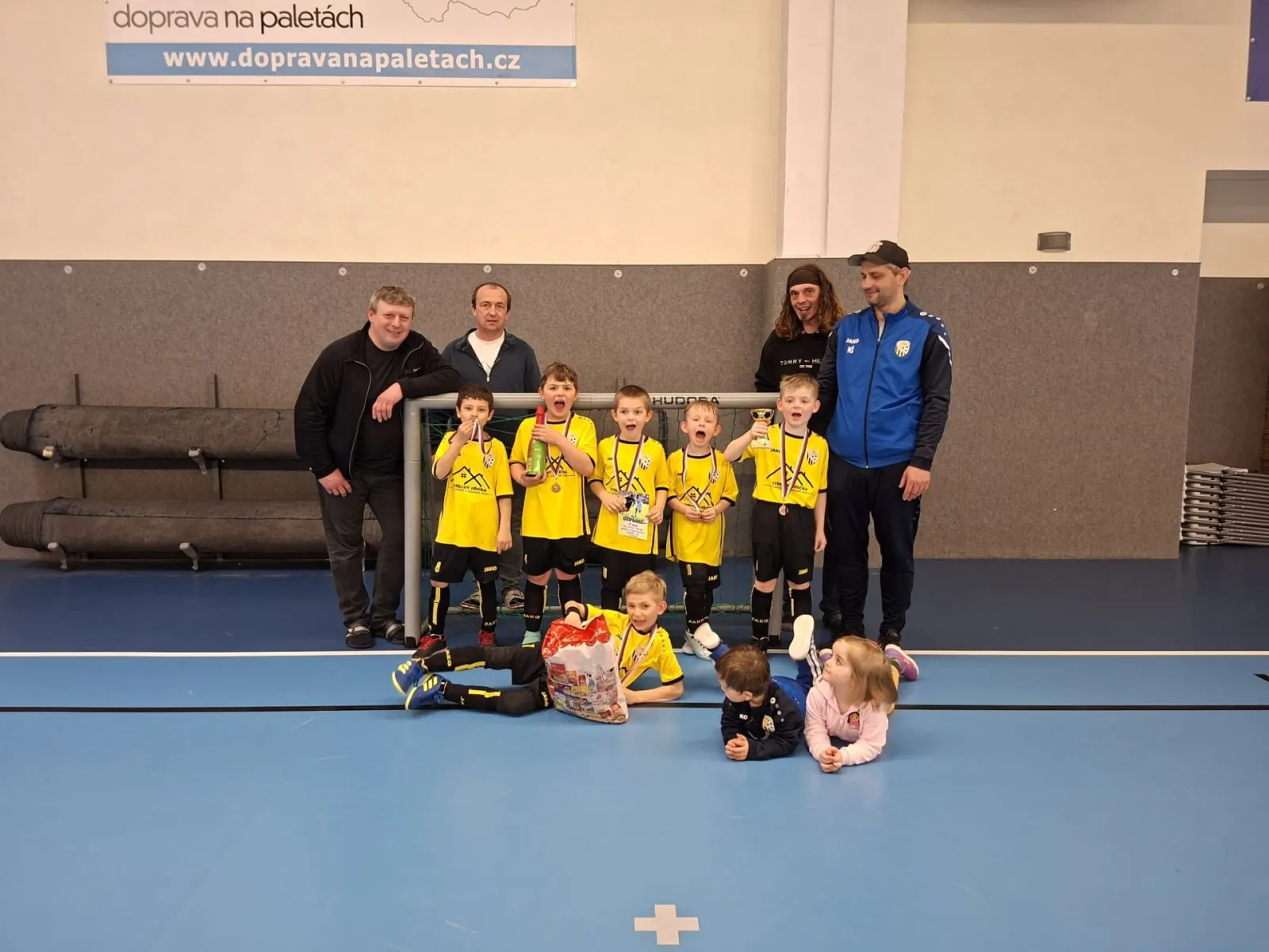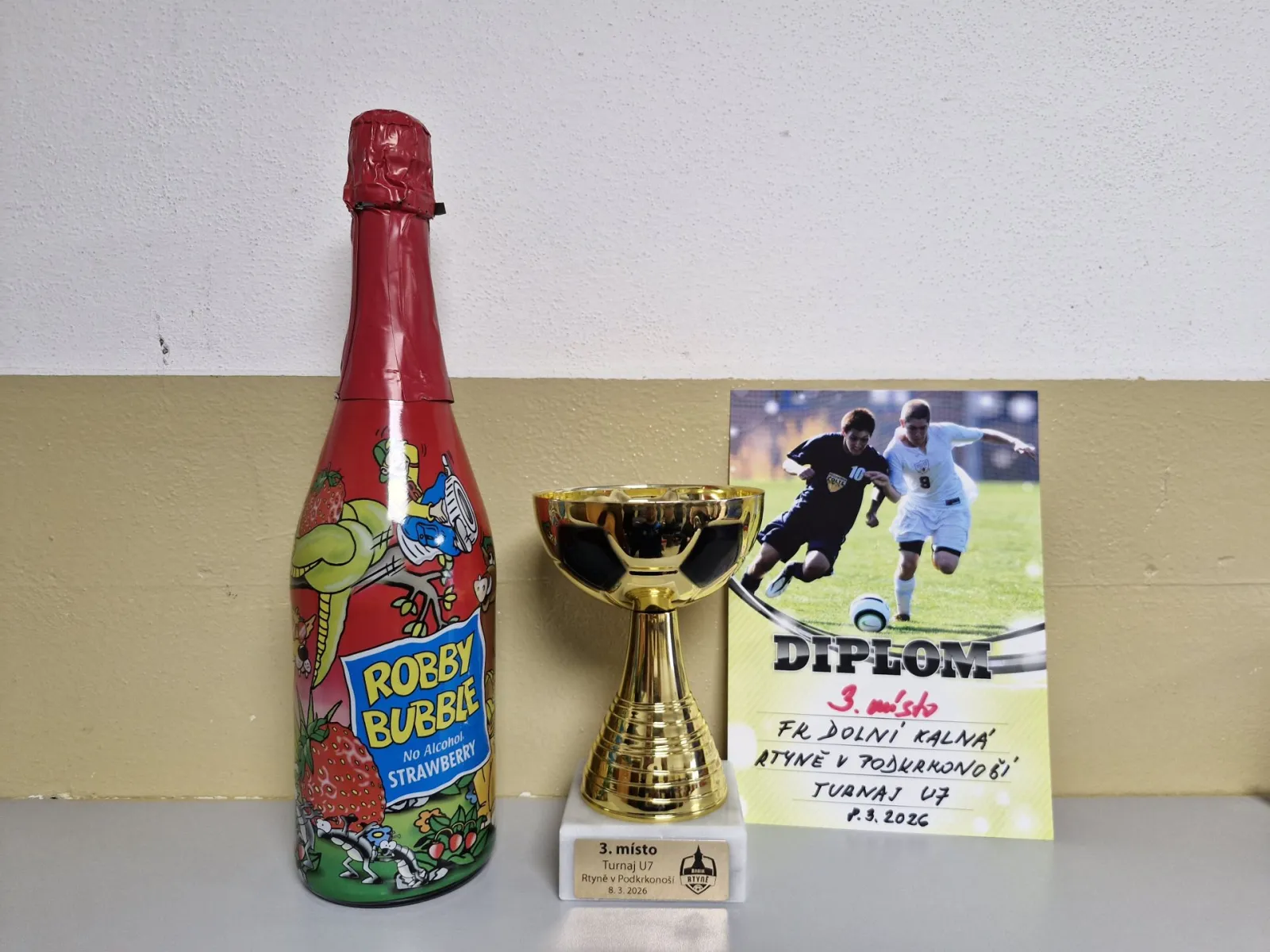 V neděli 8. března 2026 se naše nejmladší kategorie U7 (ročník 2019 a mladší) představila na halovém turnaji ve Rtyni v Podkrkonoší. Turnaje se zúčastnilo celkem dvanáct týmů z regionu a mladí fotbalisté FK Dolní Kalná zde zanechali velmi výraznou stopu – po výborných výkonech si odvezli skvělé 3. místo.