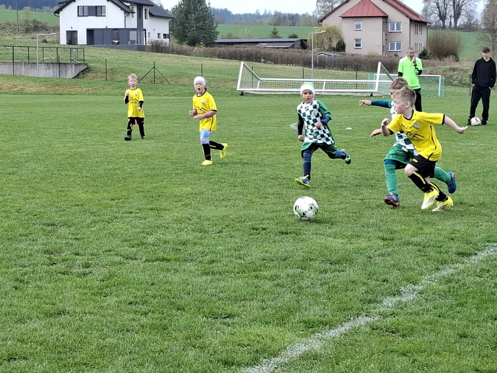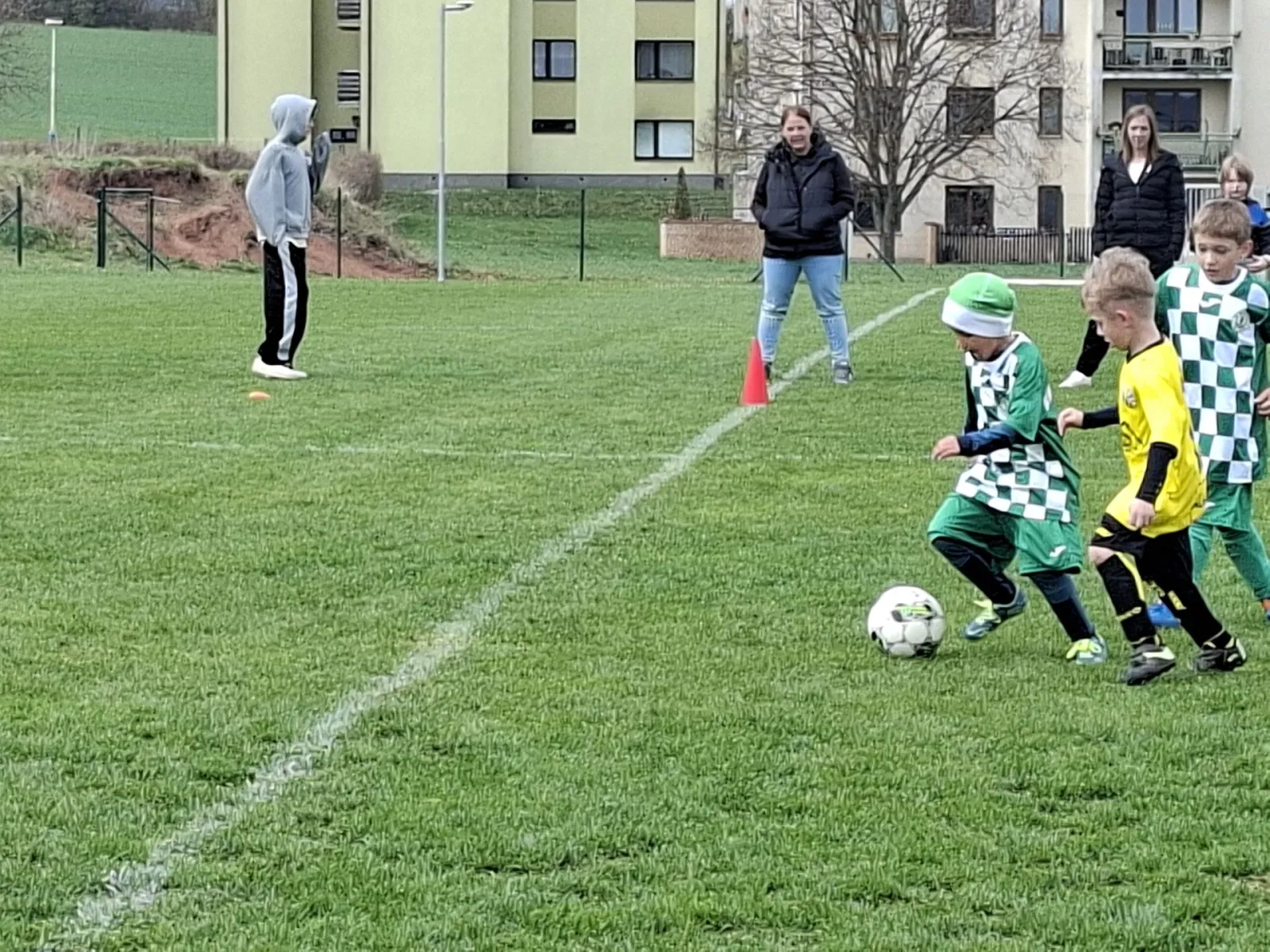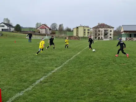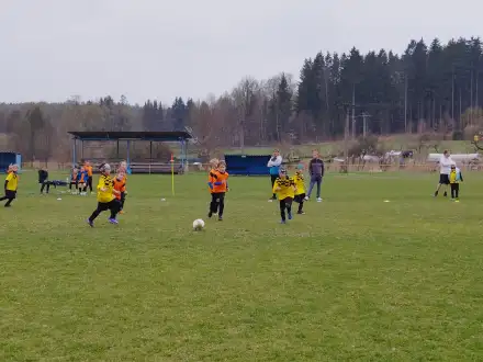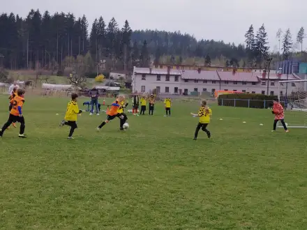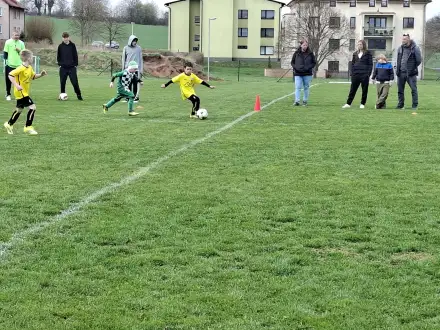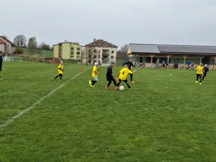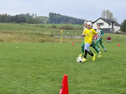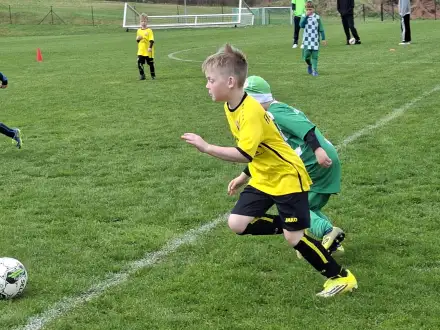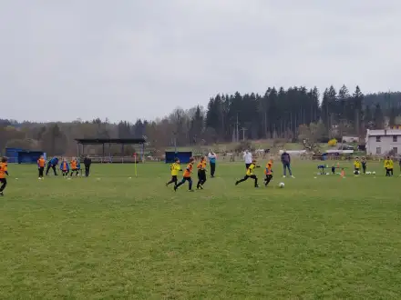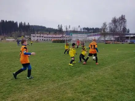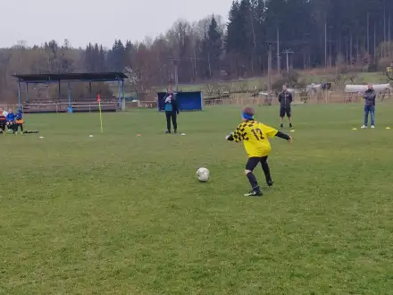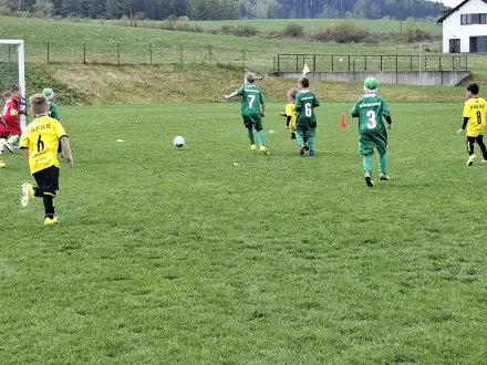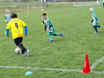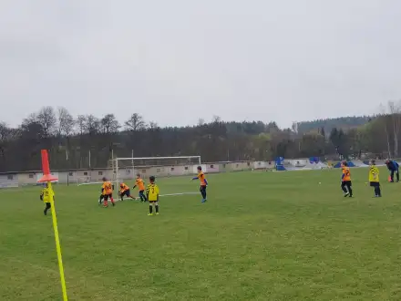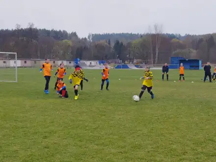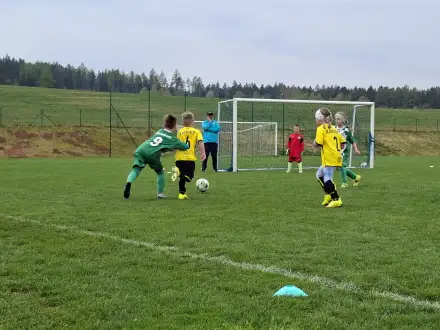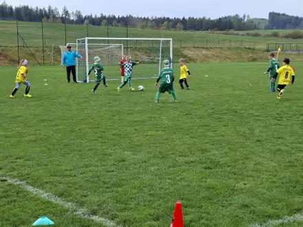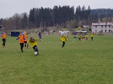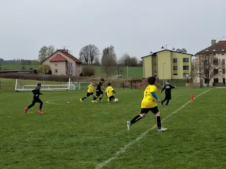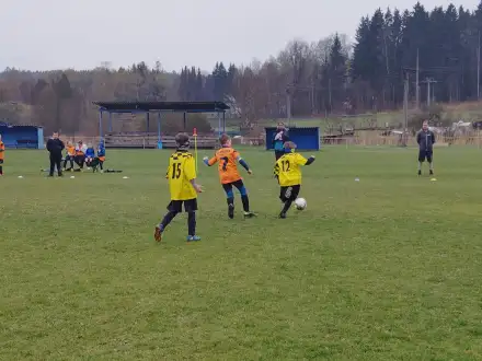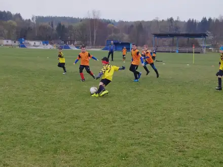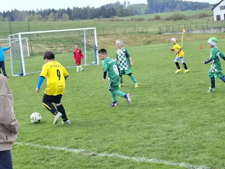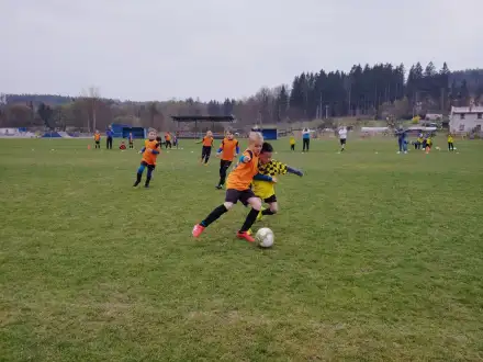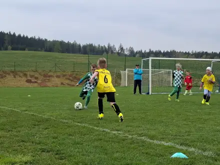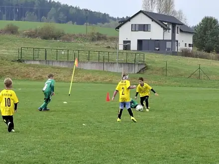 Na pěkném mokrém hřišti v Hajnici jsme na úvod sehráli zápas proti Bílé Třemešné. Děti nastoupily proti výrazně vyspělejším a věkově silnějším dětem, avšak na hřišti? To byla jízda! Ujali jsme se vedení po pěkné akci Fildy Mejsnara – 0:1. Do poločasu jsme šli s prohrou 3:1, ale se vztyčenou hlavou.