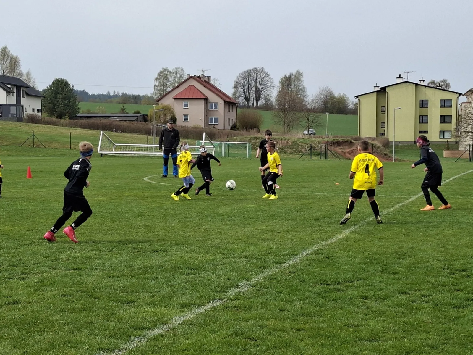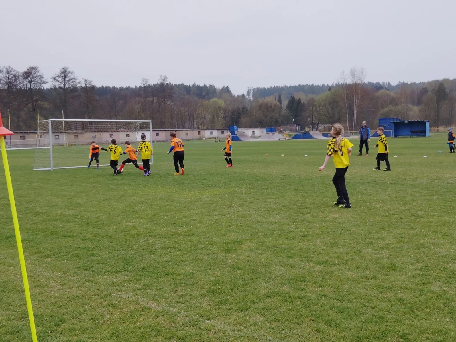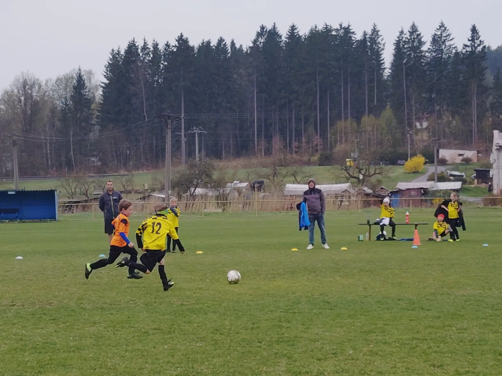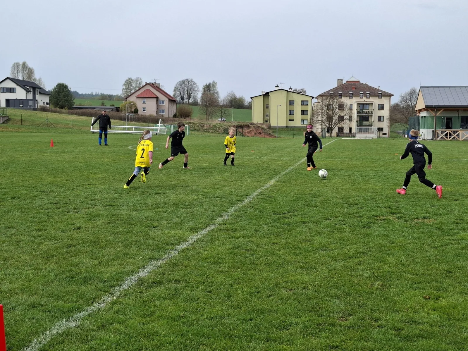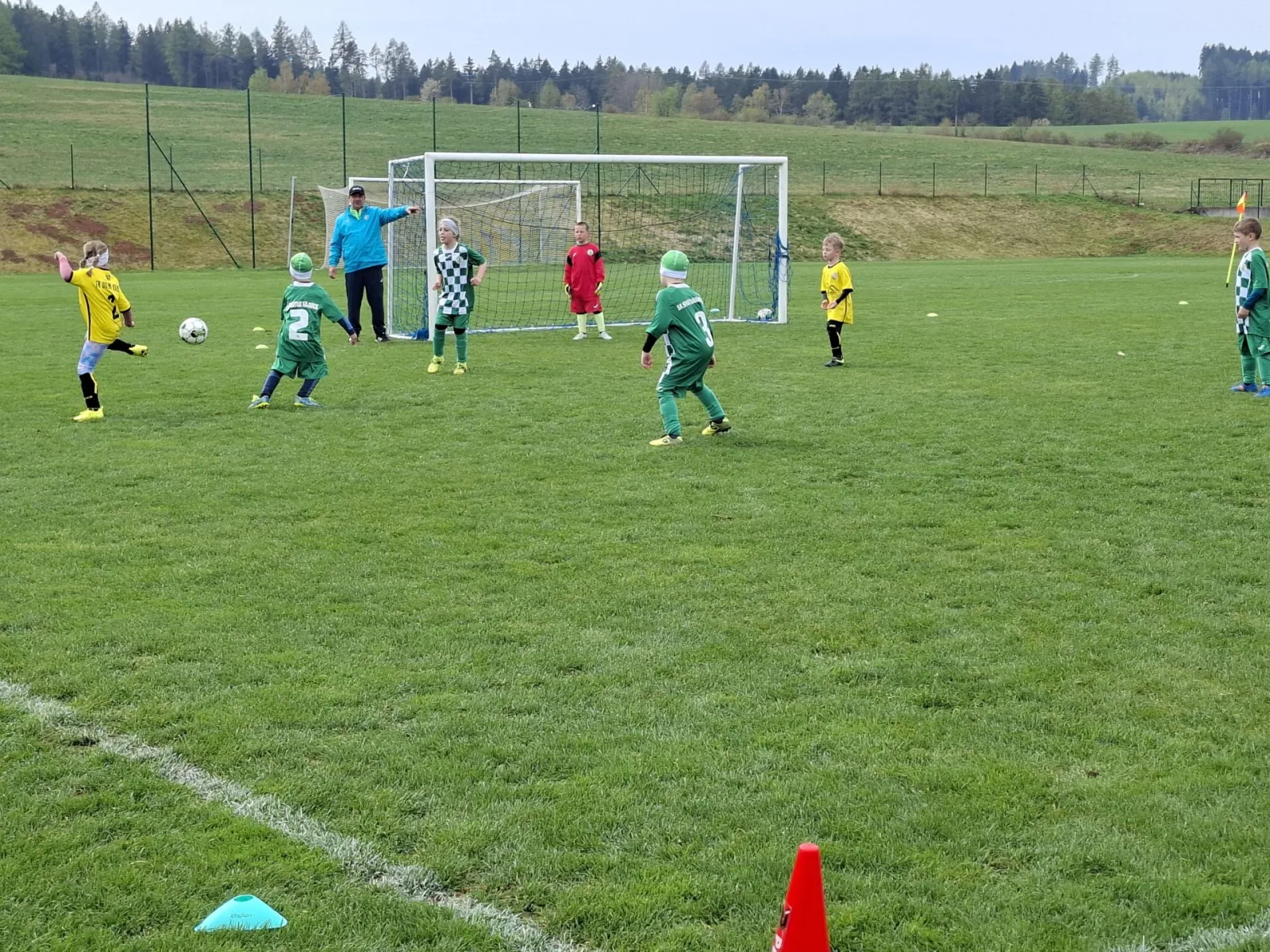 Na pěkném mokrém hřišti v Hajnici jsme na úvod sehráli zápas proti Bílé Třemešné. Děti nastoupily proti výrazně vyspělejším a věkově silnějším dětem, avšak na hřišti? To byla jízda! Ujali jsme se vedení po pěkné akci Fildy Mejsnara – 0:1. Do poločasu jsme šli s prohrou 3:1, ale se vztyčenou hlavou.