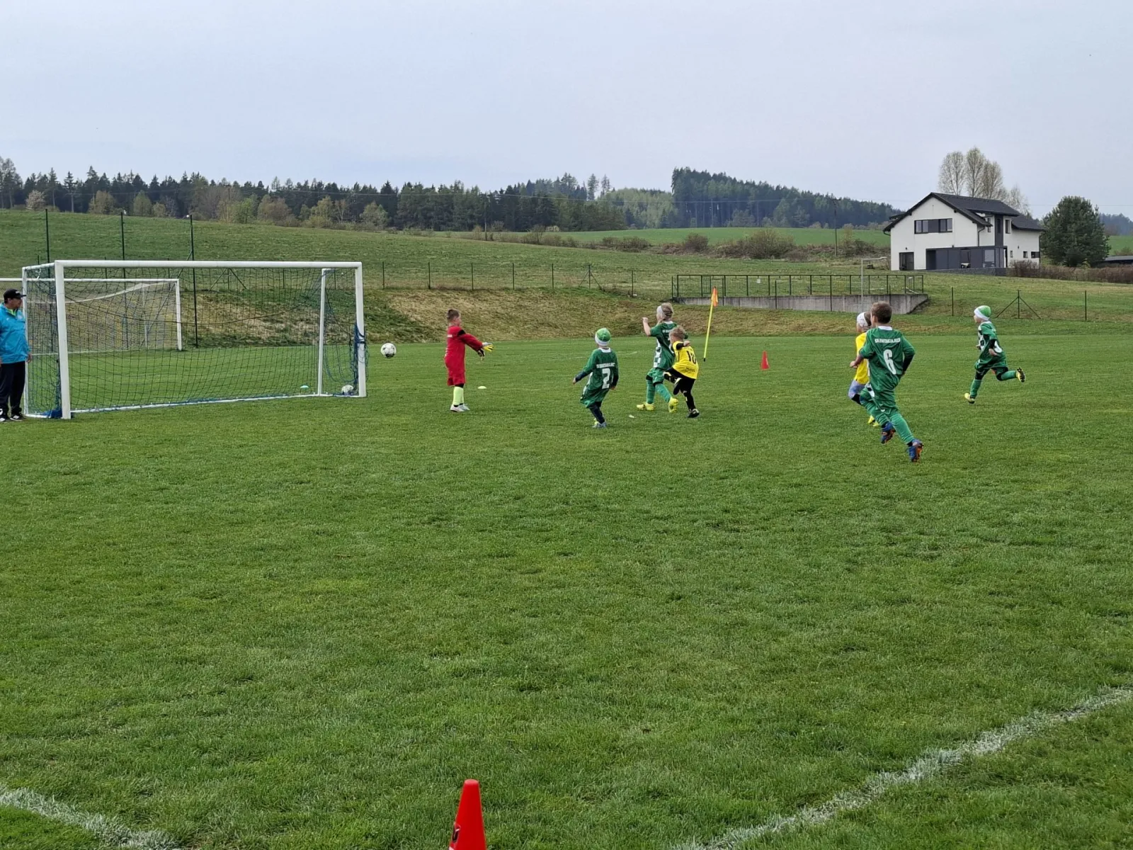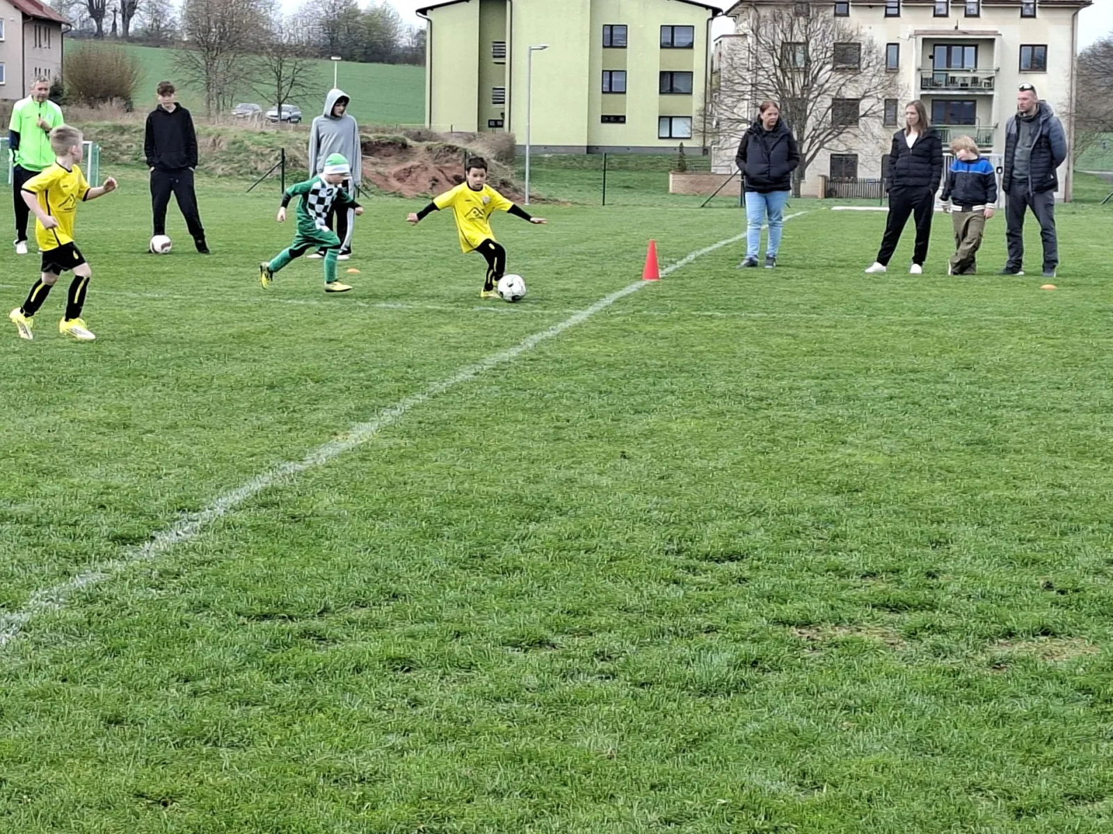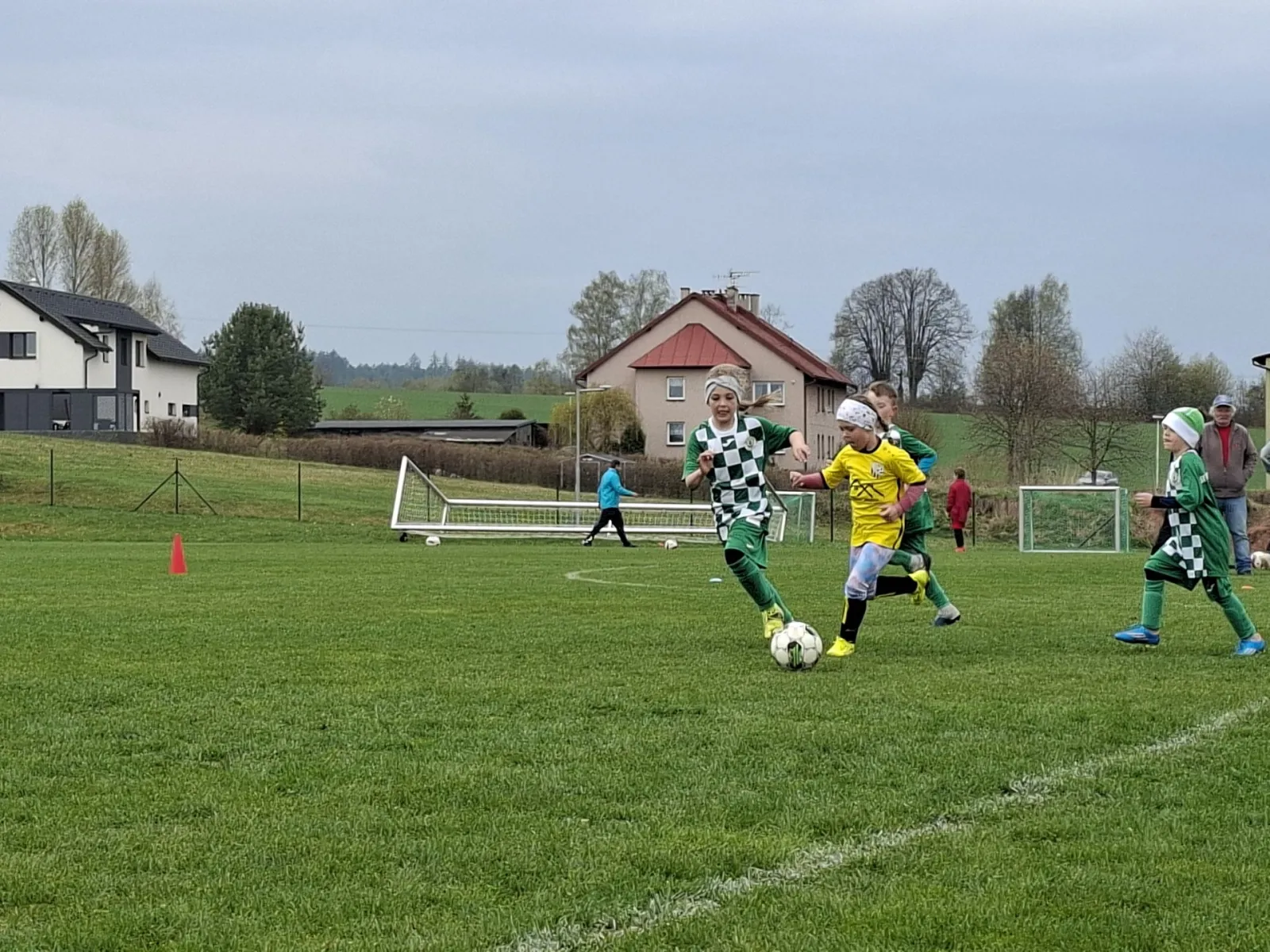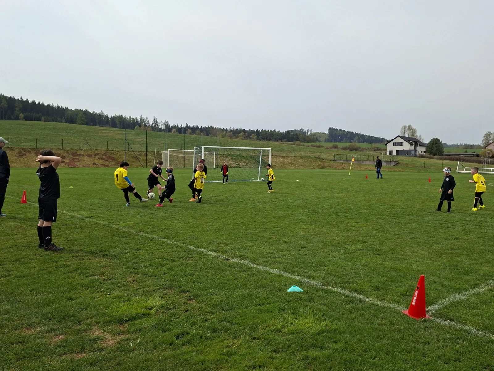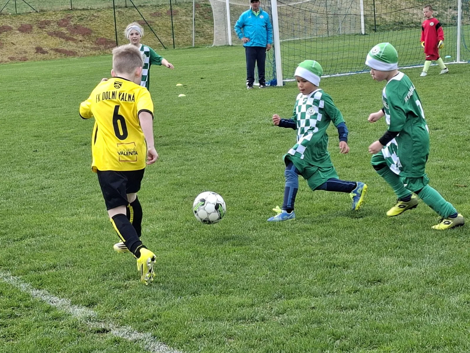 Na pěkném mokrém hřišti v Hajnici jsme na úvod sehráli zápas proti Bílé Třemešné. Děti nastoupily proti výrazně vyspělejším a věkově silnějším dětem, avšak na hřišti? To byla jízda! Ujali jsme se vedení po pěkné akci Fildy Mejsnara – 0:1. Do poločasu jsme šli s prohrou 3:1, ale se vztyčenou hlavou.