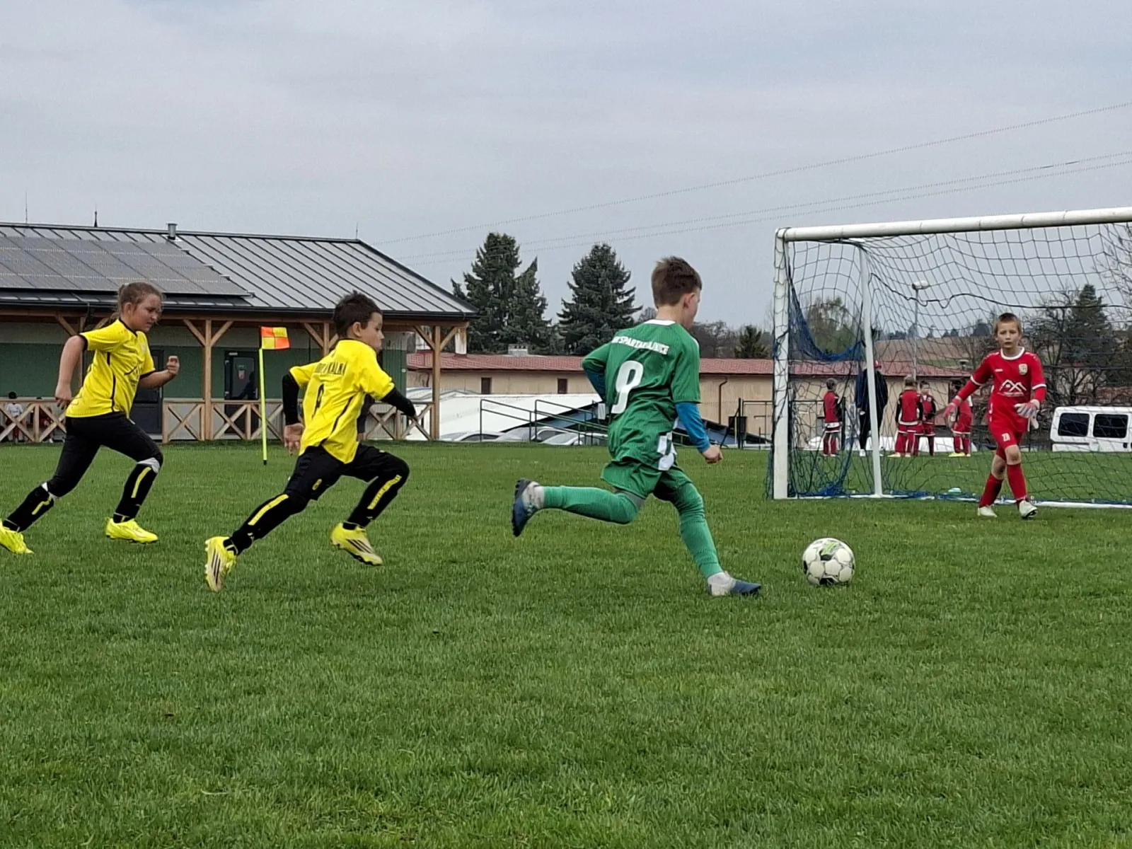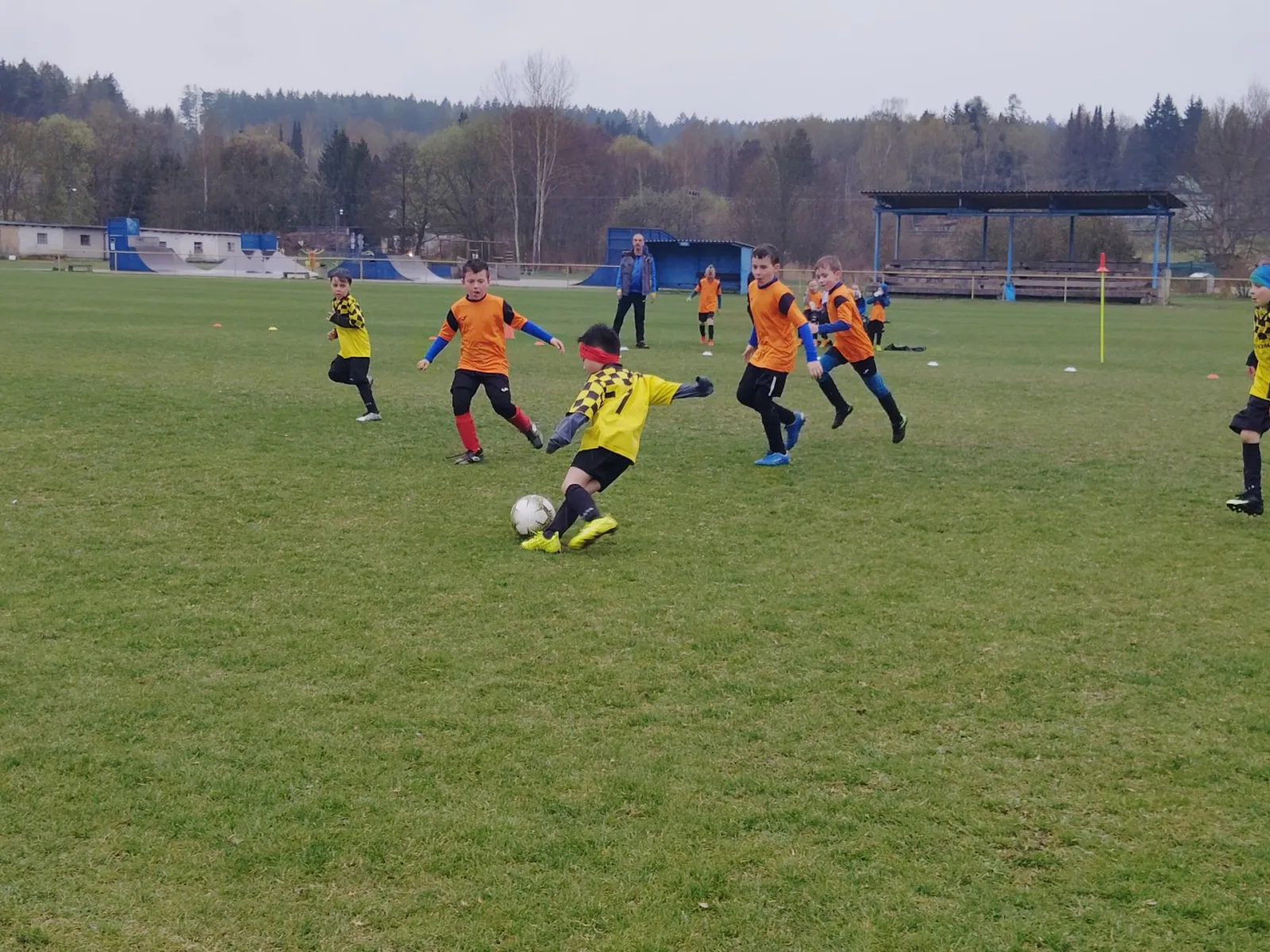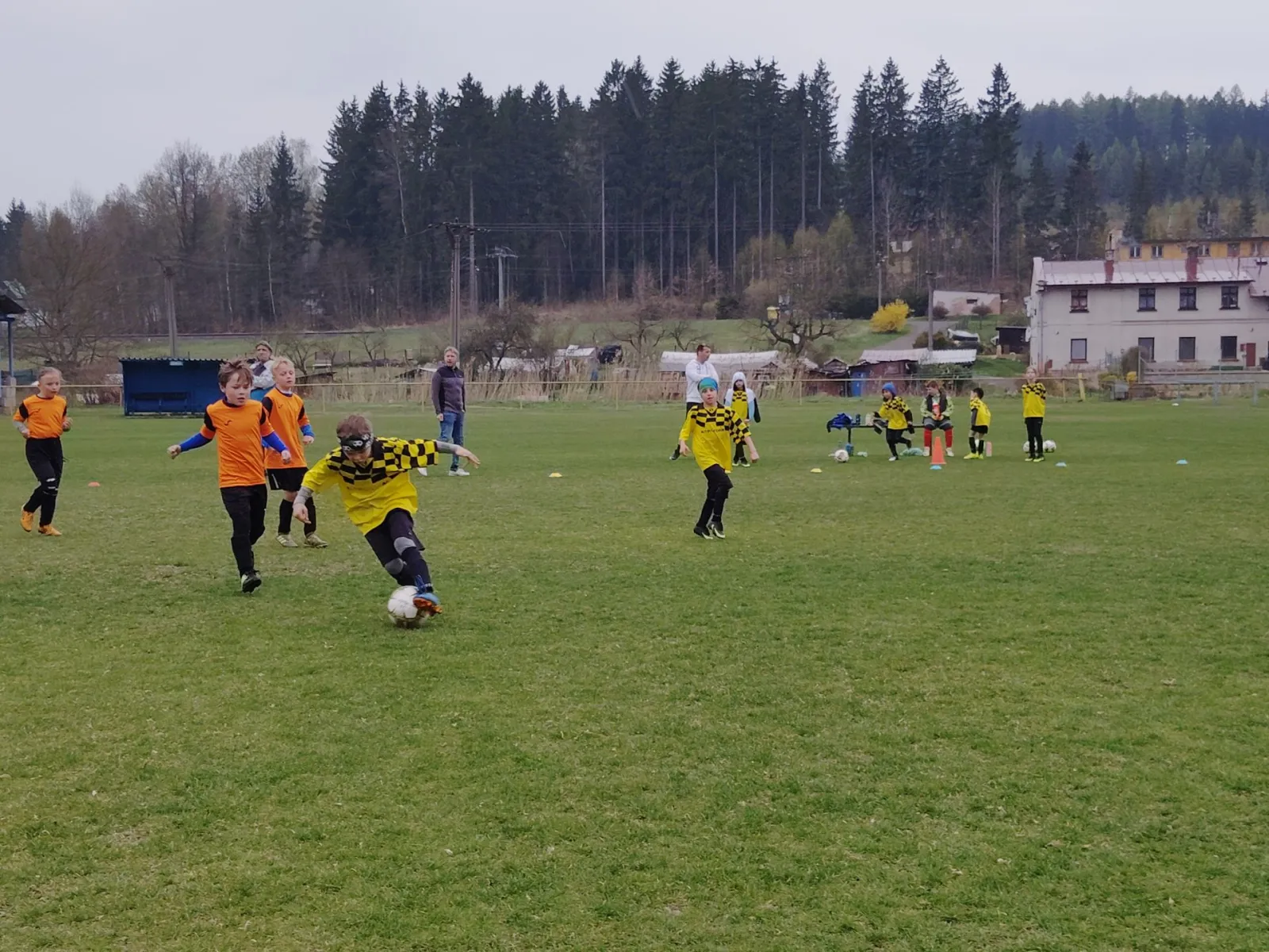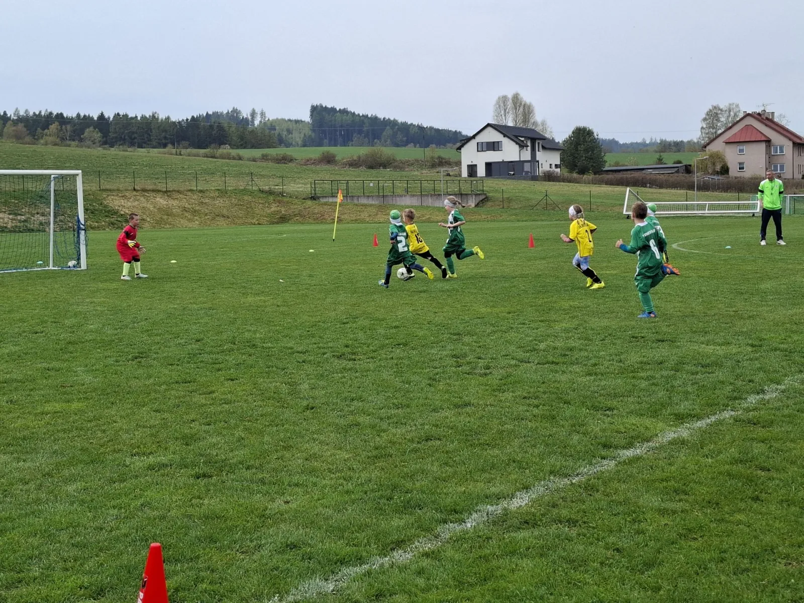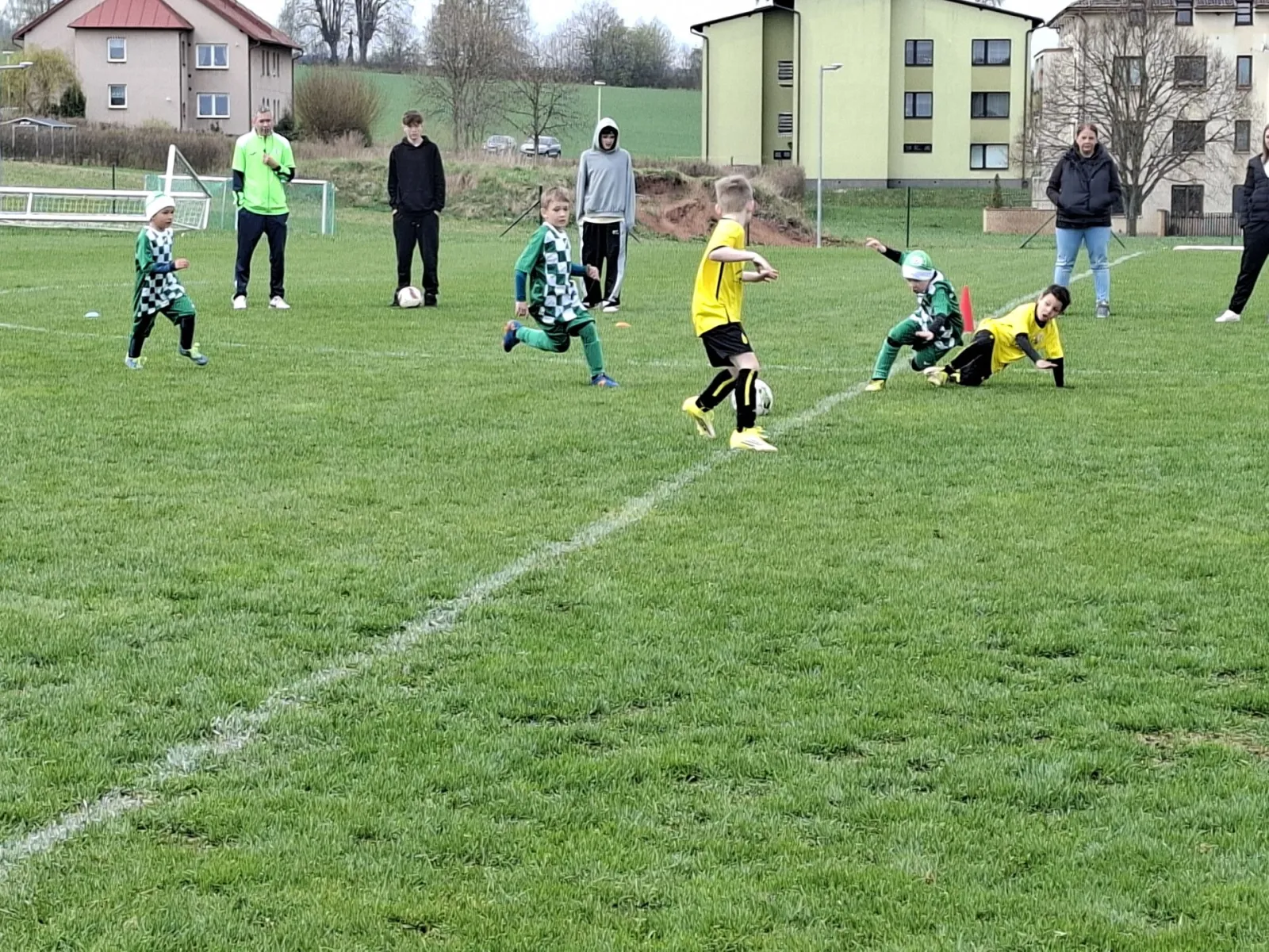 Na pěkném mokrém hřišti v Hajnici jsme na úvod sehráli zápas proti Bílé Třemešné. Děti nastoupily proti výrazně vyspělejším a věkově silnějším dětem, avšak na hřišti? To byla jízda! Ujali jsme se vedení po pěkné akci Fildy Mejsnara – 0:1. Do poločasu jsme šli s prohrou 3:1, ale se vztyčenou hlavou.